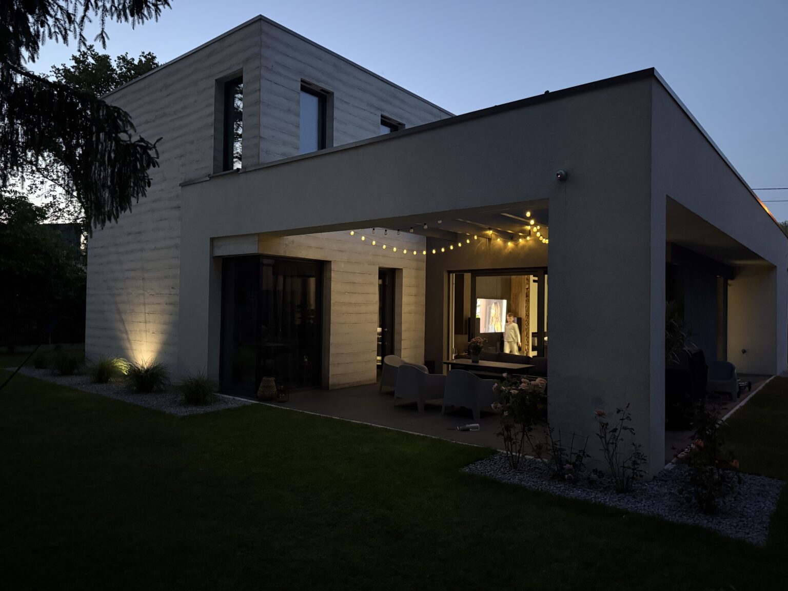 Obiekt wyposażony w nowoczesne systemy m.in.. system domu inteligentnego, pompę ciepła, klimatyzację oraz zsynchronizowane żaluzje przeciwsłoneczne.