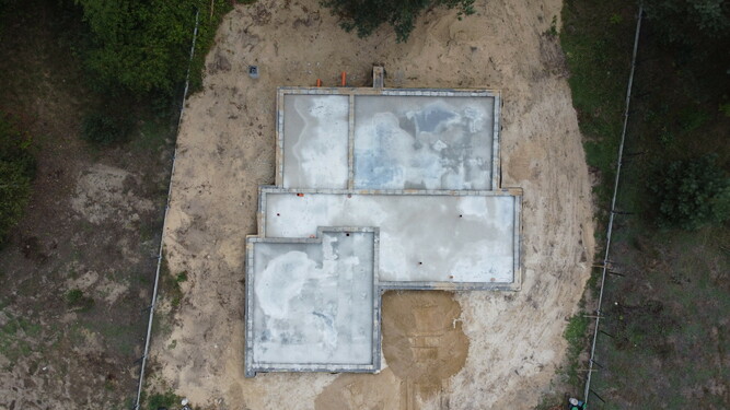 Realizacja domu o powierzchni 215 m² w miejscowości Brużycka Mała k. Zgierza to przykład kompleksowej inwestycji prowadzonej przez Pobudowani – od fundamentów po finalne wykończenie. Budynek dwukondygnacyjny z płaskim dachem został posadowiony na ławach fundamentowych, zgodnie z indywidualnym projektem dostosowanym do potrzeb inwestora.
